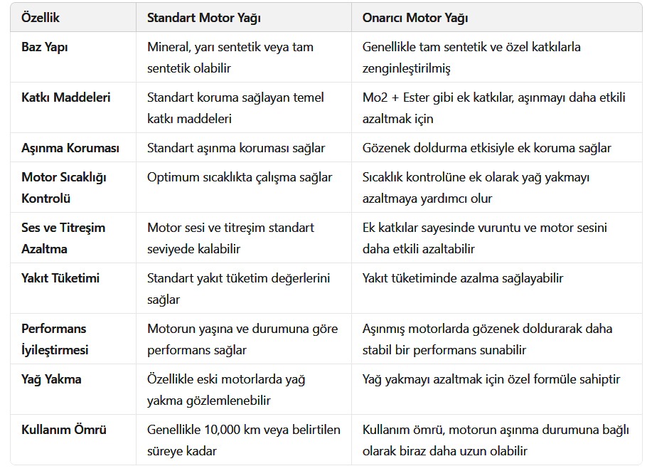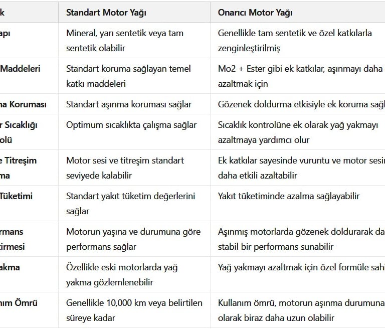 Onarıcı Motor Yağı vs Standart Motor Yağı